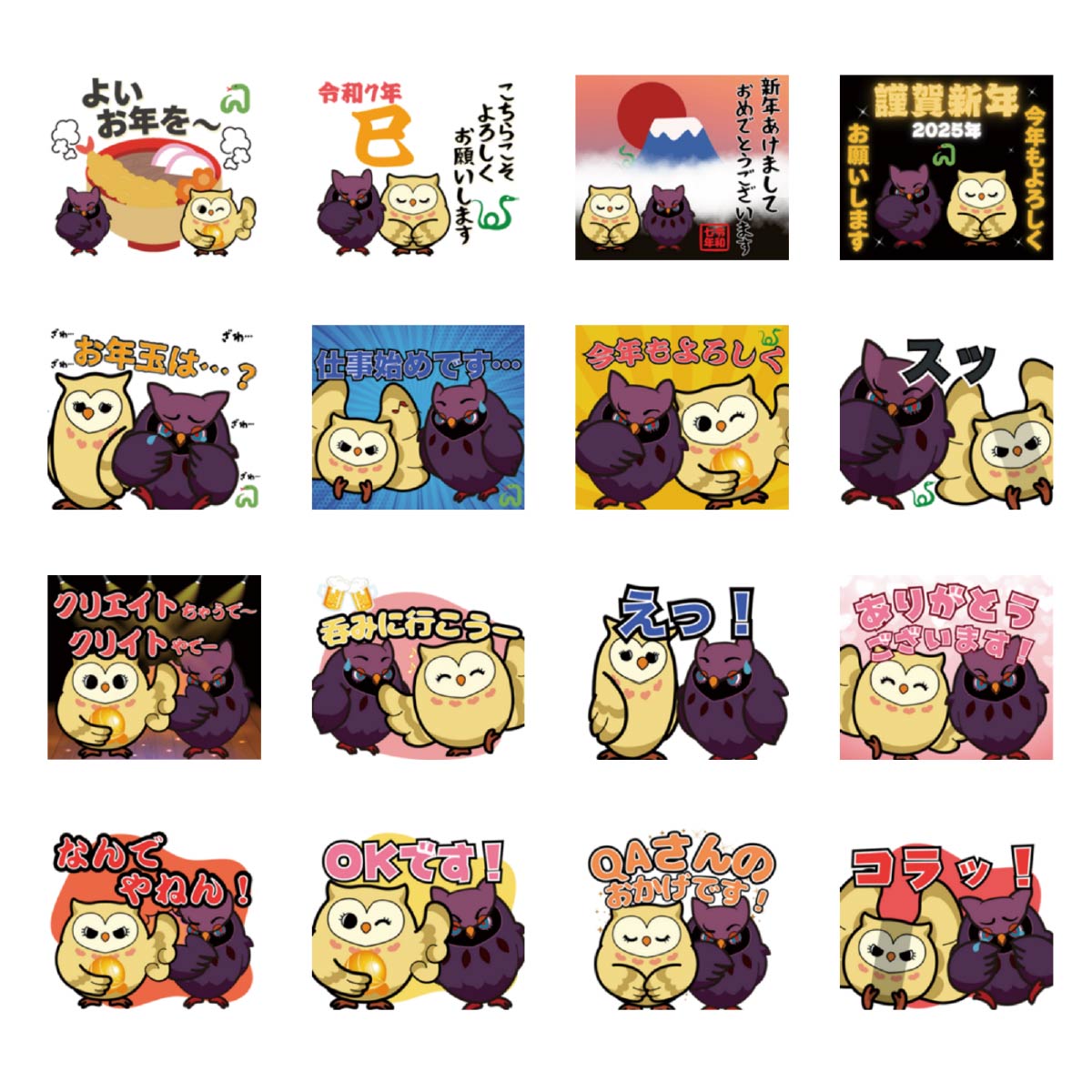 対になるキャラクターは、ふくりぃと同じ丸い骨格を踏襲しながら、ミミズク由来のピンと立った耳や尖りのあるディテールを配して、ほどよい“ツン”を表現。配色はヴィランを想起させる紫を基調に、世界観にメリハリを与えています。両者を並置することで「安心と緊張」という対比が生まれ、用途や文脈に応じた使い分けが可能になります。