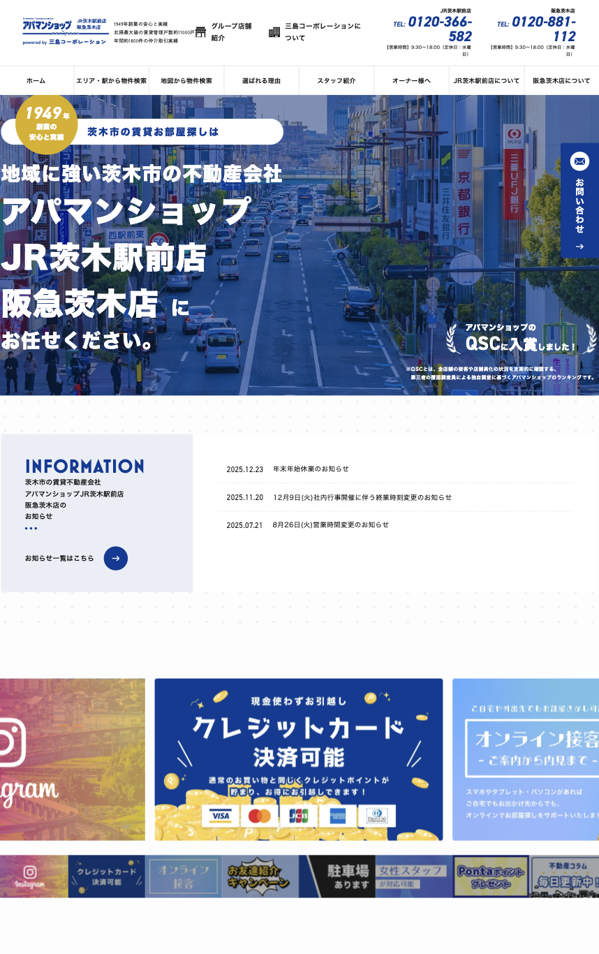 株式会社三島コーポレーション様によるアパマンショップJR茨木駅前店の店舗サイトです。