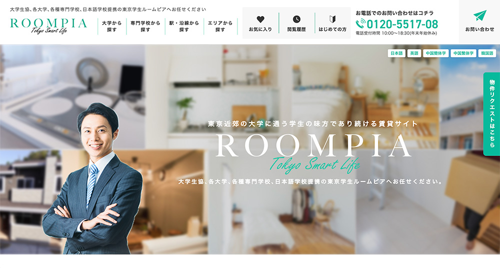 株式会社アンビション・レント様による賃貸サイト”東京学生ルームピア”です。