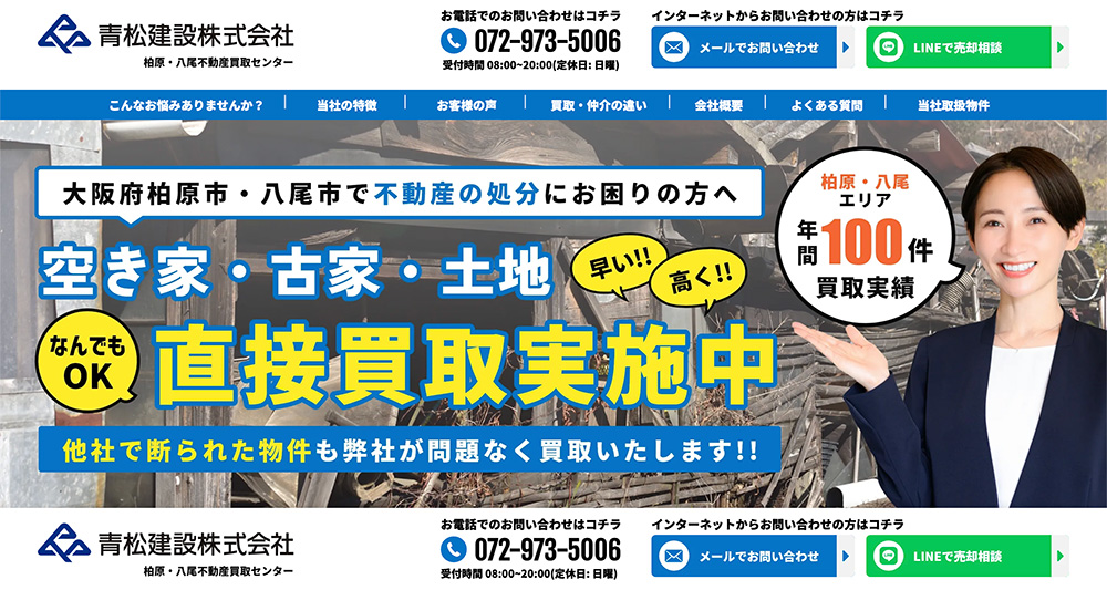 青松建設株式会社不動産事業部様による「柏原・八尾不動産買取センター 」です。