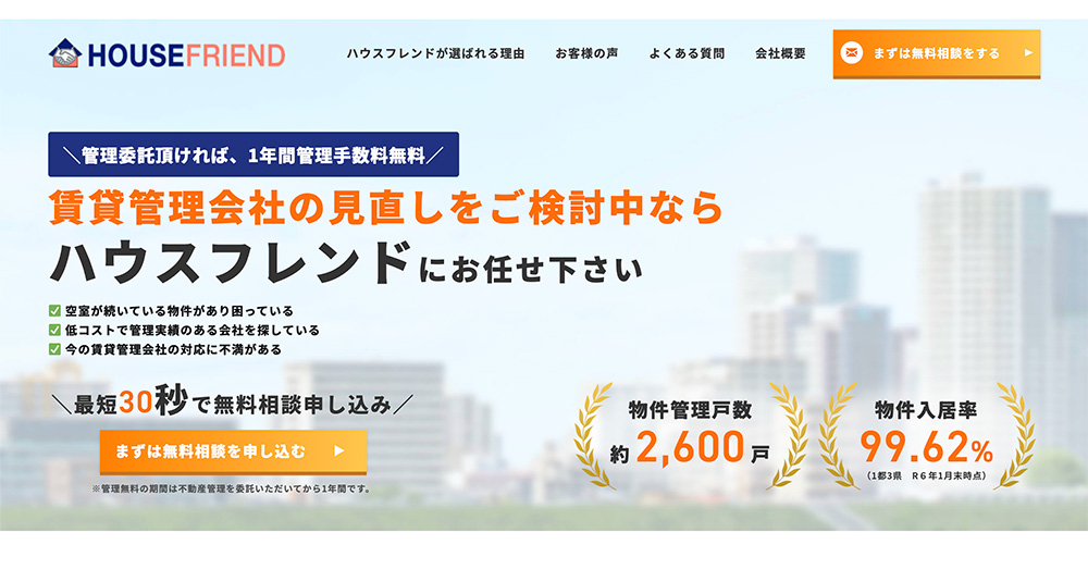 ハウスフレンド様の不動産ホームページ制作実績 | 反響獲得・おしゃれなデザインの不動産Web制作会社 PENGUIN2